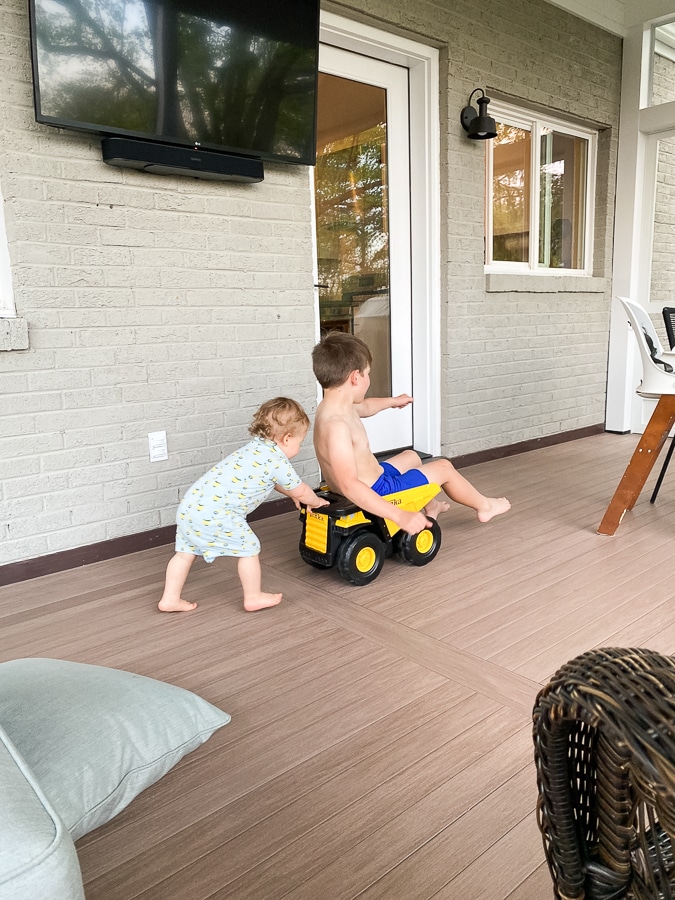 Birch discovered Mazen’s playdoh basket. These boys together can destroy a room quite fast! I’m trying to balance needing lots of at-home entertainment and also doing some work around the house to simplify things so that they can’t tear a room apart by default. The answer to that is closed doors (for Birch) and toy rotation. More on that soon too!