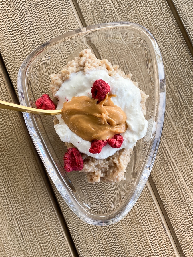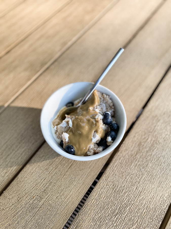 You know how I have gone through 1,000 oatmeal trends in 12.5 years? My latest one is mixing yogurt and Greek yogurt together. It’s a warm weather thing. I made a big batch of steel cut oats in the rice cooker and they were only prepared with water. So the protein needed a boost. Greek yogurt is the quick answer to that. I heat the oats only enough to get them warm, not hot, and then spoon on yogurt and other toppings. I love the blend!