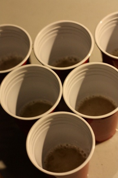 And the beer pong started!