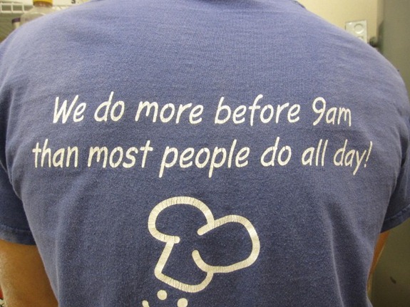 The thing about bakeries is that you have to get started really early so that the bread is ready for opening.