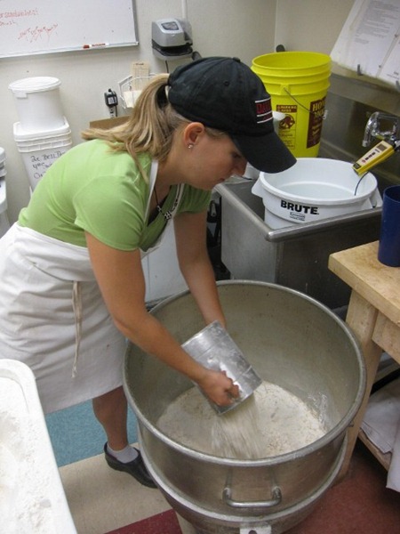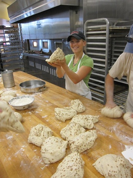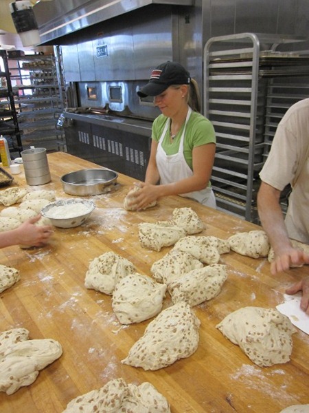 At 7 it was time for kneading!! Hundreds of loaves! In my opinion shaping loaves is the hardest part – it takes a while to get used to each dough’s personality and the different techniques.