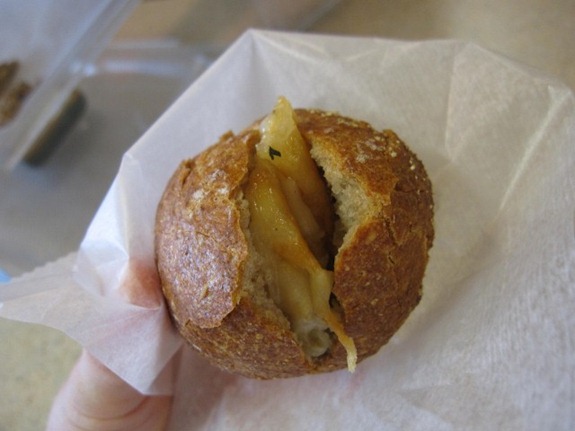 A tiny Whole Wheat Sourdough roll fresh from the even stuffed with cheese!! (“Lunch”?!)