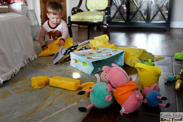We had a lovely Easter! Plenty of delicious food and lots of Peeps. We started the day with a visit from the Easter Bunny – Mazen loved his basket of trinkets and gifts from Mimi and Papa!