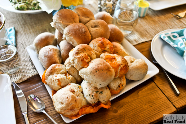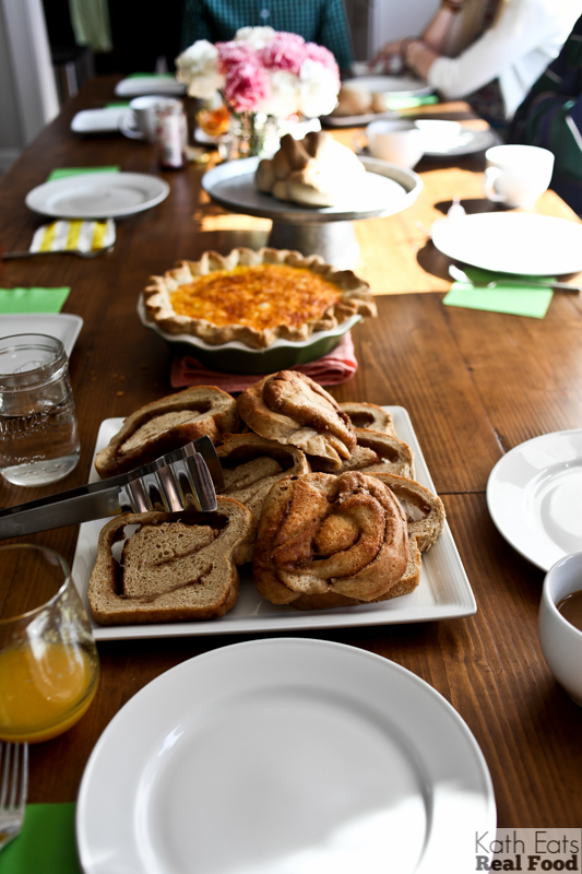 All the food looks AMAZING, especially the quiche, pecan swirl bread, and the cake with the cookie dough frosting. Sign me up!! We had some lovely Great Harvest rolls at our Easter gathering yesterday and they were so delicious!