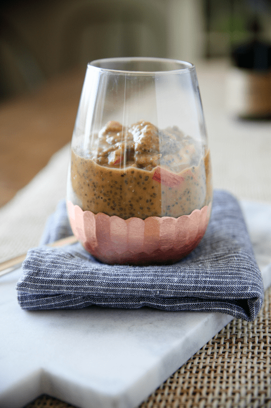 Chia pudding, which is sort of like tapioca-meets-regular-pudding, is a cold breakfast or snack made from chia seeds and liquid of your choice (usually milk or dairy-free milk). Like overnight oats, there’s no cooking – just mix, stir, and chill overnight. I am nuttzo about the texture of chia pudding! If you haven’t tried it, “fluffy” is the best way to describe it. If you have, then you know what I’m talkin’ ’bout! It’s perfect for end of summer mornings when we’re diving back into “school mode” or warm mornings when you want a cold breakfast. And it’s completely versatile to create new flavors throughout the seasons.