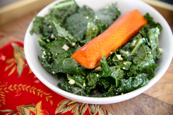 When we were putting together dinner on a whim a few weekends ago we combined prepared pesto, feta and kale into the most delicious three ingredient salad. It was so good I knew I had to replicate it for a blog post.