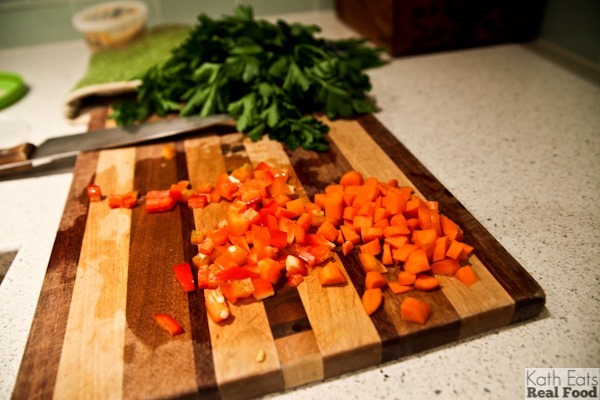 While the squash is roasting, chop your veggies – use in an onion if you like those kind of things ![]()
