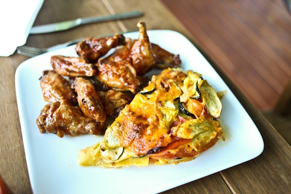 MMM that gratin looks amazing! I have some zucchini to use up, and I think I know how I’m going to do it now! I don’t like wings either, much to my husband’s dismay. I much prefer thighs.