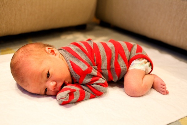 Matt makes such lovely plates of food! That “tummy time” picture is just precious–his little legs are so sweet. Congratulations!!!