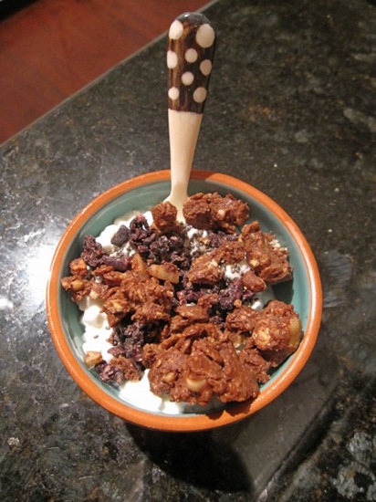 Once home (2.5 hours later) I was hungry and the chocolate party continued – over cottage cheese! I never would have thought of this combo (er, I guess I did..but you know!) but it was totally awesome!!!