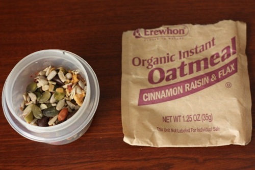 Go you for being prepared!!!! I always bring things like bars with me but I’ve never thought of bringing instant oats.. duh!!! And an empty nut jar? Genius.