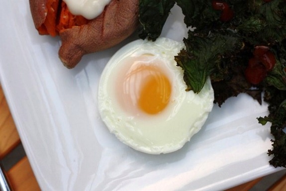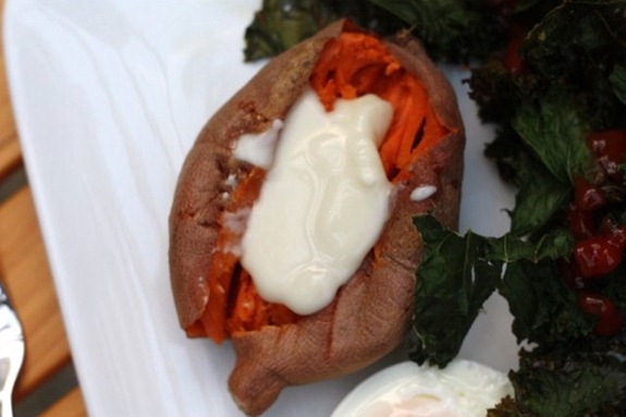 Kale, sweet potato, and egg. Although I didn’t have the delicious coconut butter. I just ate my potato plain, but it was still lovely. 🙂