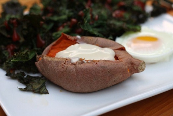 That sweet potato looks delish! Eggs are sort of low in calories, too. Try 2 eggs next time. 🙂