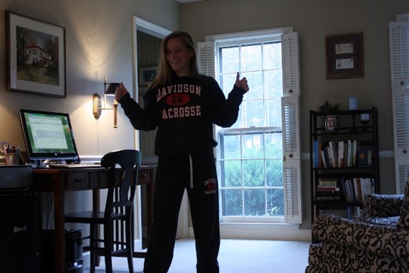 I showered – best.shower.ever. after being cold and wet – and threw on all my Davidson LAX sweats!! I bought these from Whitney (the one who just got married!) freshman year to support her team and I loooove them. I haven’t had a no-make-up sweats day in SO LONG.