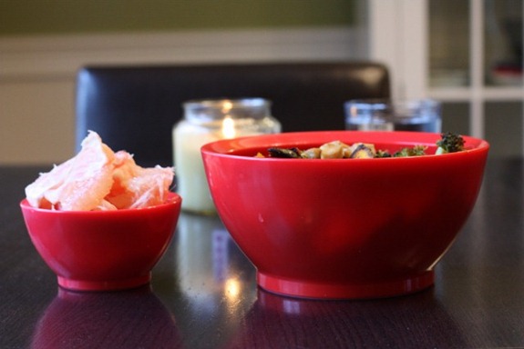 For lunch I morphed my leftovers into an arugula salad and had a side of grapefruit.