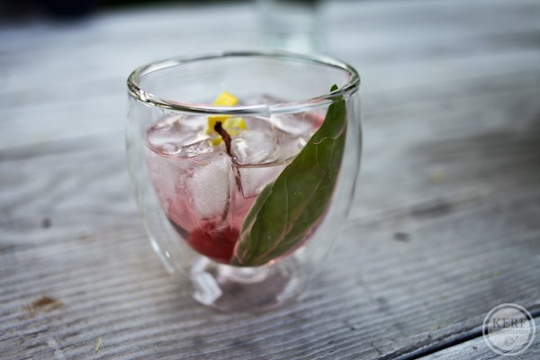 I kept the proportions for the on-the-rocks version (assuming 1 ounce = 30ml), used elderberry juice cut with sugar syrup, a bit more basil and Beefeater gin. Macvin is an interesting choice here, I think, but the proportions would have to be adjusted because it dominates. As someone else said, the elderberry gets completely lost except for its colour.