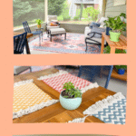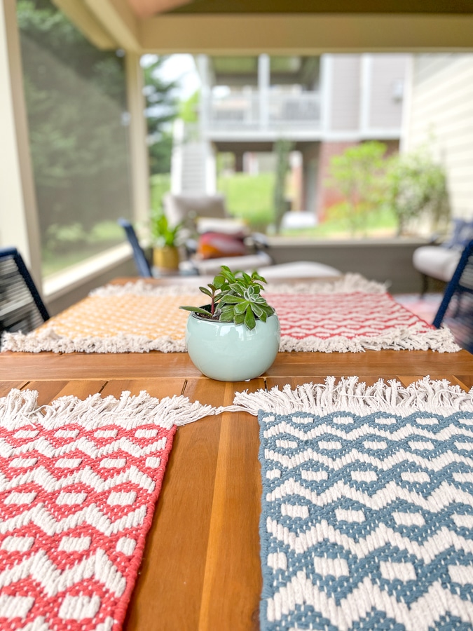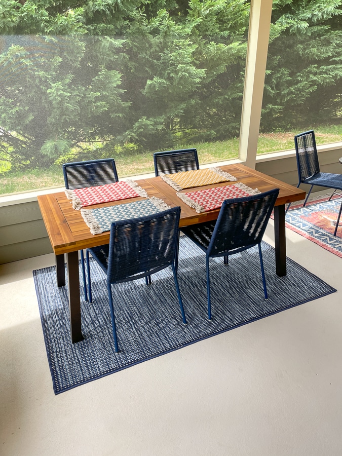 Ellen: I had been eyeing those pink and navy landscape pillows for over a year (thank you Instagram ad!) but they didn’t fit in with the colors in my house. When I was looking for porch decor ideas, I went straight to West Elm’s website and found the rug which reminded me about the pillows. And the rest just fell into place!