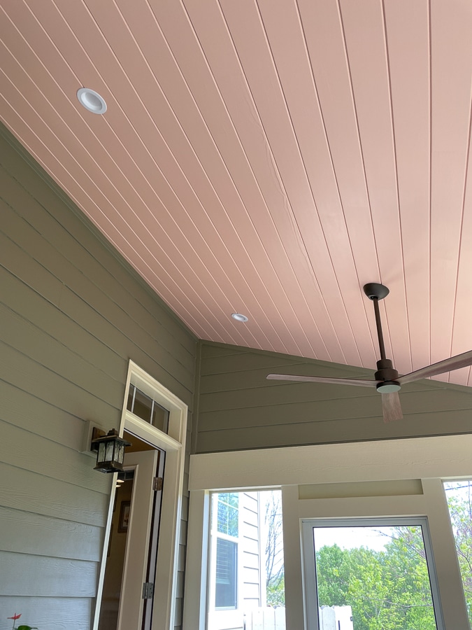 Ellen: My favorite part is that I can sit out here day or night, rain or shine, and be cozy reading a book or sipping wine with a friend. But I could also say that the “antique coral” vaulted ceiling is my favorite part. 🙂