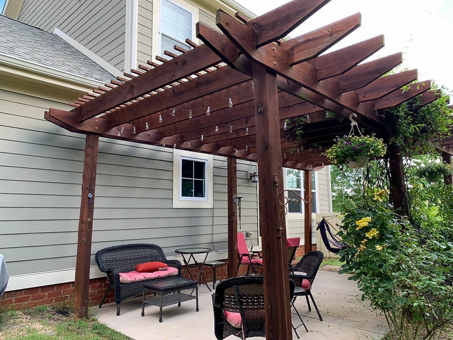 Last summer my good friend Ellen sent Thomas a text inquiring if it would be possible to transform her back patio with a shadeless arbor into a functional and cozy outdoor room. Thomas, who is the co-owner and general contractor behind Sun Structures, said absolutely!