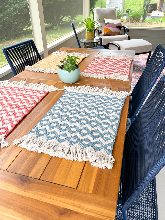 My friend Ellen hired Sun Structures to transform her back patio into a functional and cozy screened porch. Her colorful screened porch decor was too beautiful not to share!