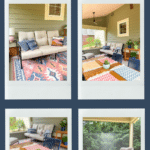 Hi Maggie! Thank you! All of the furniture, rug, and pillow inserts are made for outdoors. The couch cushions and chair are Sunbrella fabric. I put an outdoor rug pad under the rug to help dry it out after heavy rains. And I sprayed Scotchgard on the pillow covers to help protect them. I did buy covers at Plow & Hearth for the couch, chair, and table that I’ll use for the winter to help everything last as long as possible, but they are currently in the garage in storage. The porch roof also has a 12″ lip all the way around that keeps out most rain. Some rain definitely gets in during heavier storms or windy rainy days, but I often can sit out on the couch and enjoy a rainy day and stay completely dry!