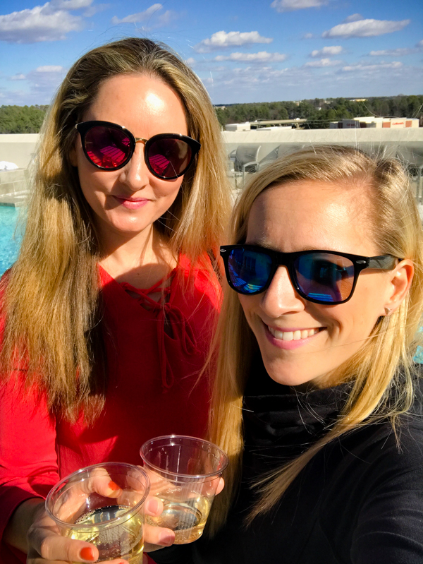 Earlier in the day, Sarah and I took the kiddos to Short Pump to run a few errands and pay a visit to our favorite ACAC location! We shared a glass of wine, and had chef salads at the cafe after our workouts and showers.
