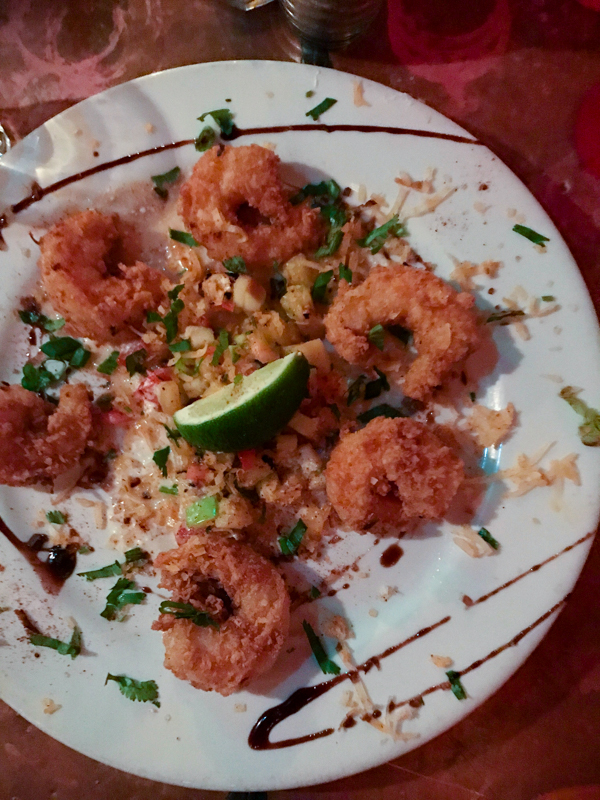 I shared this coconut shrimp, calamari and a burrito with my girlfriends. And some chips of course!