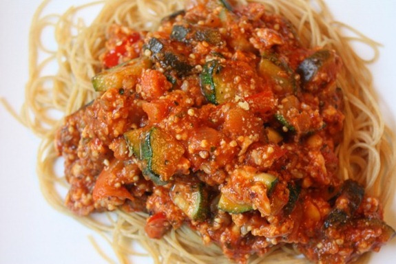 Mm, that looks like a great sauce! I’m a volume whore and not a big fan of pasta in the first place, so I always mound my plate up with tons of sauce on top of veggies like green beans and broccoli. So satisifying!