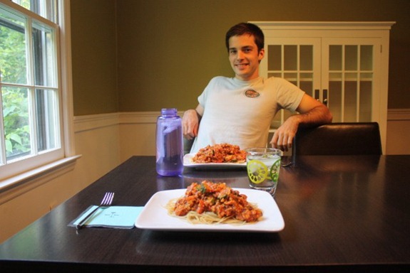 But your dinner looks sooo delicious! It reminds me of the days back in high school when my dad would make vegetarian spaghetti and there were also vegetarian taco nights as well.