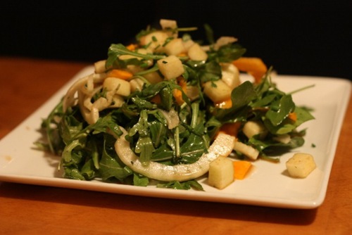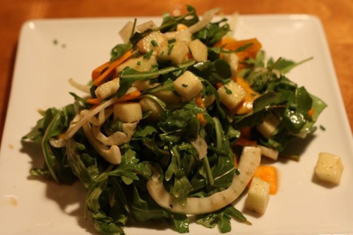 The Arugula, Apple, Butternut and Fennel Salad for me. It was great and the perfect amount, but I wish the butternut had not been raw!