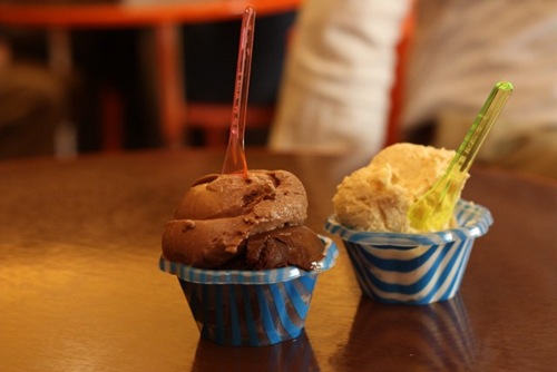 I sampled many flavors and settled on the hazelnut and chocolate sorbet, which was like fudge. I could have eaten 10 of these!
