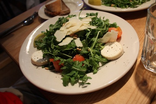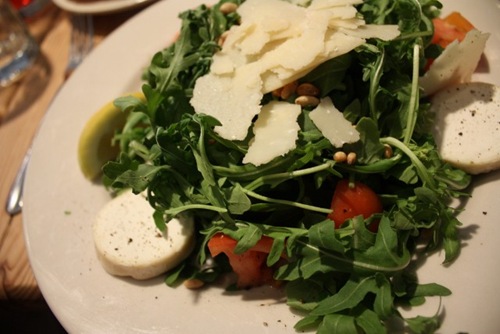 I decided on the Aged Goat Cheese + Arugula Salad with Parmesan and Pinenuts