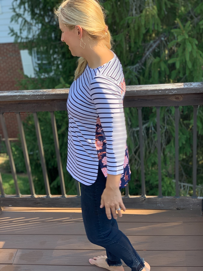 This top was an instant keep. It sums up my Stitch Fix style preferences in a snap: casual, comfortable, with something unique (the floral back). I’m also sporting the Rockstar jeans from Old Navy!