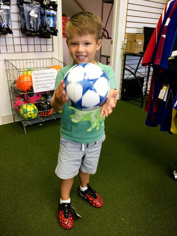 After that, soccer shopping! He is SO pumped for his new cleats and shinguards!
