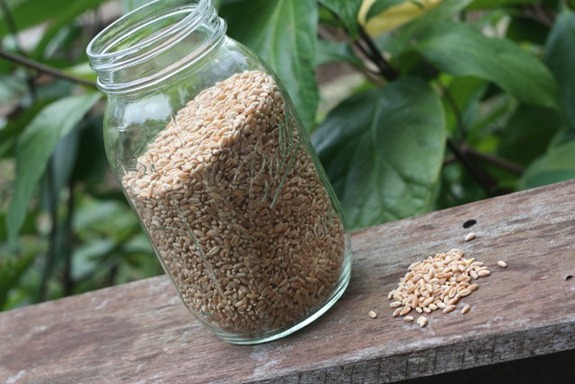 I buy “hard red winter wheat” (I think that’s what they’re called) at Whole Foods in the bulk foods section. Check your local health foods store – and ask if you can’t find them. Mine are 150 kcal per 1/4 cup dry. Bob’s Red Mill also makes a line, which you can order online or maybe find in a store.