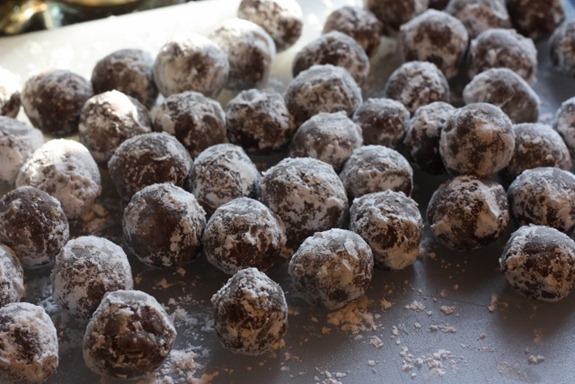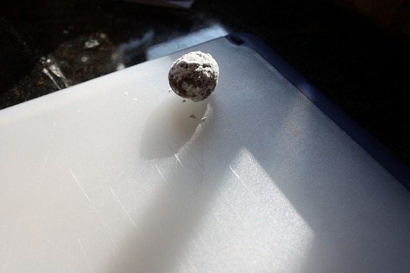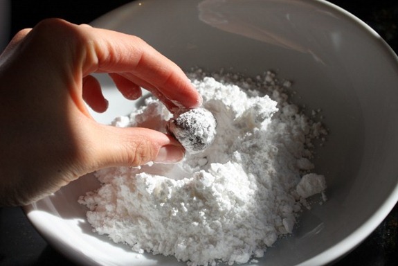 Begin to roll into balls. I find it helpful to squish a blob of dough back and forth between my hands 6-7 times to mush it all together before I begin rolling