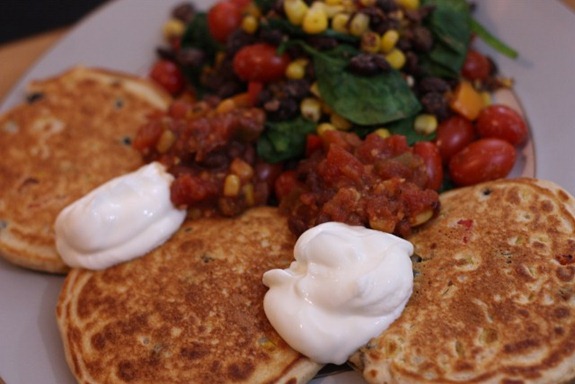 Want veggies with your breakfast for dinner? Turn pancakes into a savory flapjack with all the fixins.