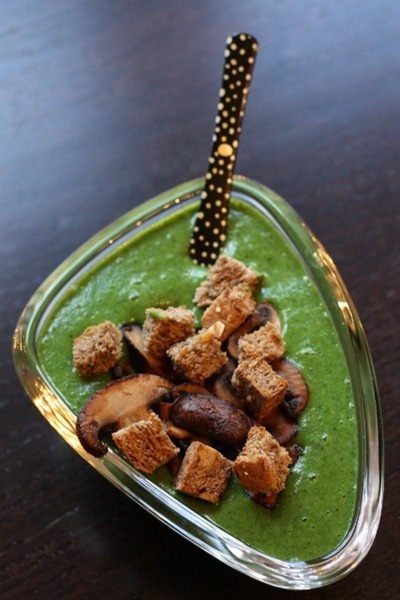 Garnish with sautéed mushrooms and homemade croutons (or bacon tidbits or greek yogurt!)