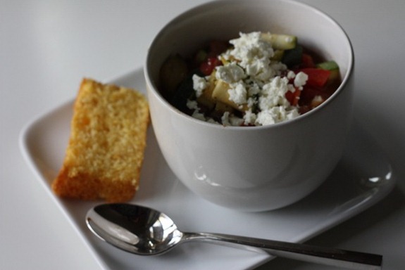 Just summer veggies, herbs and broth. All crockpotted up for 2 hours. Full of flava!!