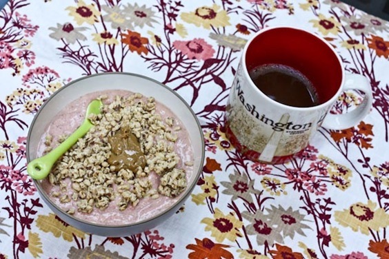 Yesterday morning I had a smoothie and a hot coffee on the side. It was weird to go between the two. But tasty!