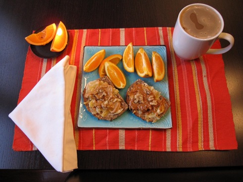 how funny that we both had pretty much the same breakfast this morning! This is my last day before Spring Break at college so the apt. is low on food! I scrounged up an orange and honey wheat toast with pumpkin butter and peanut butter!