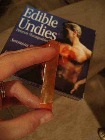 Those edible undies…look like fruit roll ups. mmm..plasticy fruity goodness. 🙂