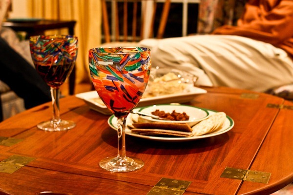 I love those glasses – so festive! Looks like a great night, and the hummus sounds delicious!