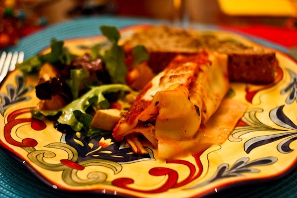For dinner Catriona made manicotti, delicious Italian, plus salad and Great Harvest bread