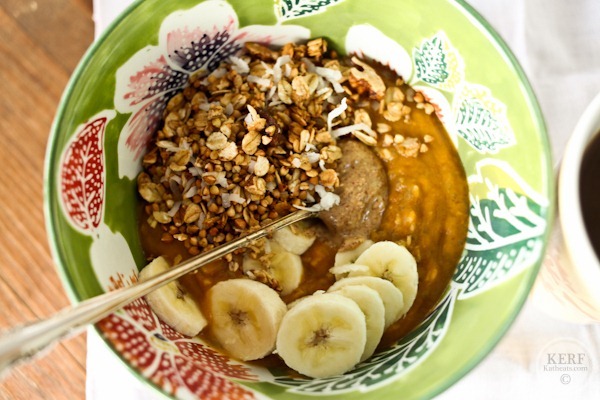 Mornin’ friends! After a few days of pumpkin in loaf form, it was time to have it in creamy oatmeal form again.