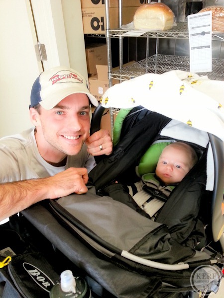 After a hard run and Pump, my only workout goal today was to walk, so Mazen and I did about 3.5 miles around town, including a visit to the bakery! I love to walk in unannounced and see how excited Matt is to see M in the middle of the day.