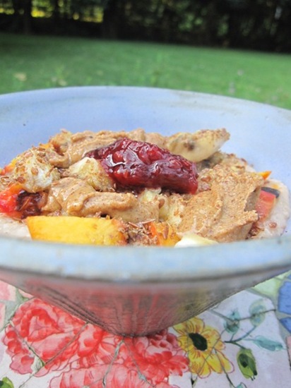 Okay, I just have to say, this bowl of oats looks fabulous. I am soooo re-creating it next week. This week, I have committed to myself to eat 80% raw (only meal we are heating is dinner, fish and steamed veggie) as an experiment, after reading and reviewing “Eating For Energy”… check out my review on LiveWell360.com, pretty interesting). Anyway, I am a bit in oatmeal deprivation, but am surviving and feel pretty darn good. Thanks for the food porn! 😉