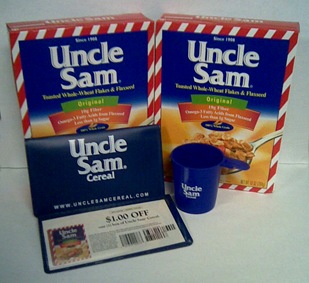 - 1 Uncle Sam Cereal coupon keeper with a $1 off coupon