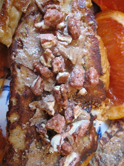 Wow, that french toast looks amazing! I can’t wait for Kelsey to post the recipe. I love how you topped it with nut butter and pecans… so yummy!
