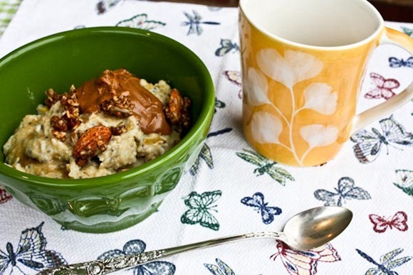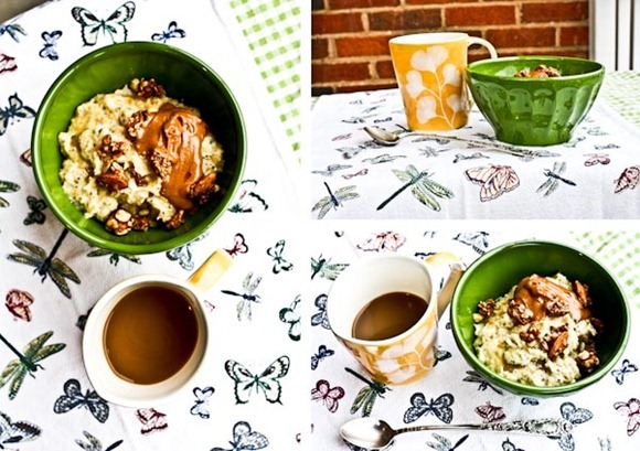 The oatmeal looks delicious. I love your props too. I love tea, but I like the flavor of coffee too much to replace it. Peppermint tea curbs hunger and is low in caffeine.